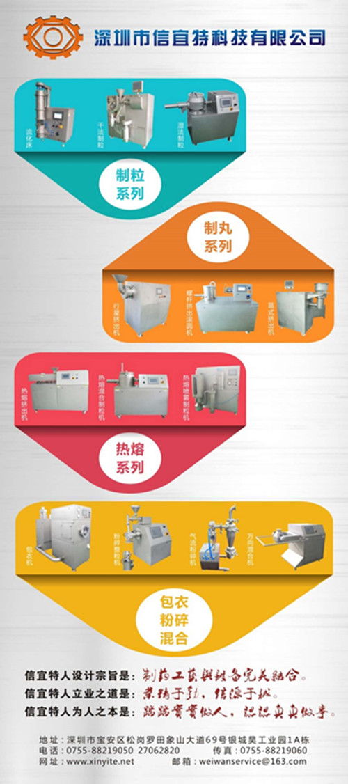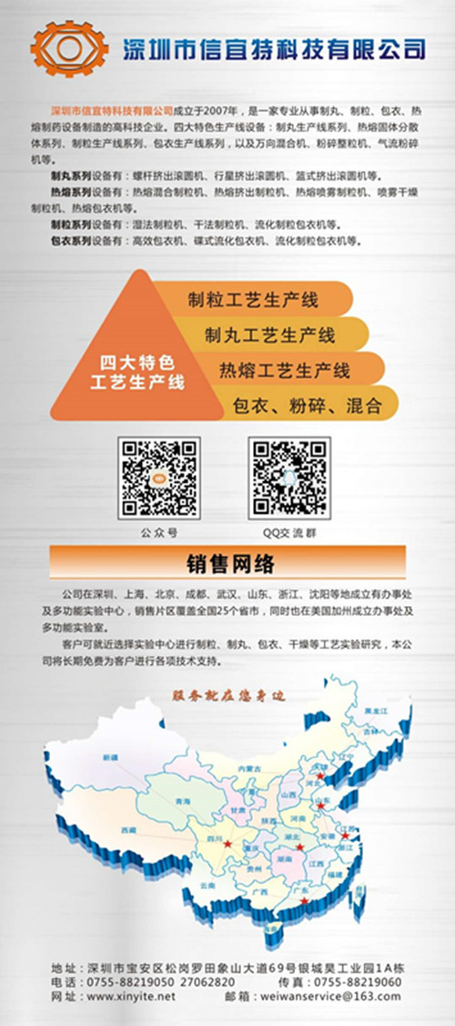 非常感謝您對深圳信宜特科技有限公司一直以來的大力支持,我公司將參加PHEXTOUR藥物制 劑技術巡回研討會宜昌站,屆時將由我們公司技術人員分享制藥設備原理對工藝的影響,探討在固體 制劑研發和生產中一些常見問題出現的真正原因以及相應的應對策略。同時,在此次研討會上,也會 有知名藥用輔料和功能食品配料廠家(亞什蘭、kenry、 廣生膠囊、贏創、羅蓋特等)與大家交流新型 輔料在藥物制劑及營養健康品中的應用。