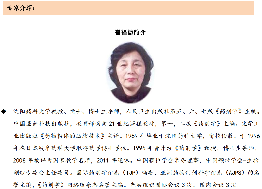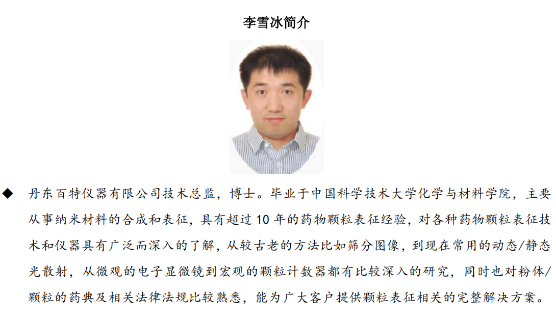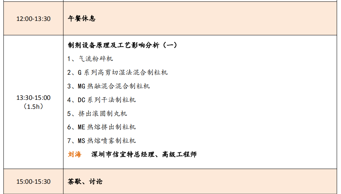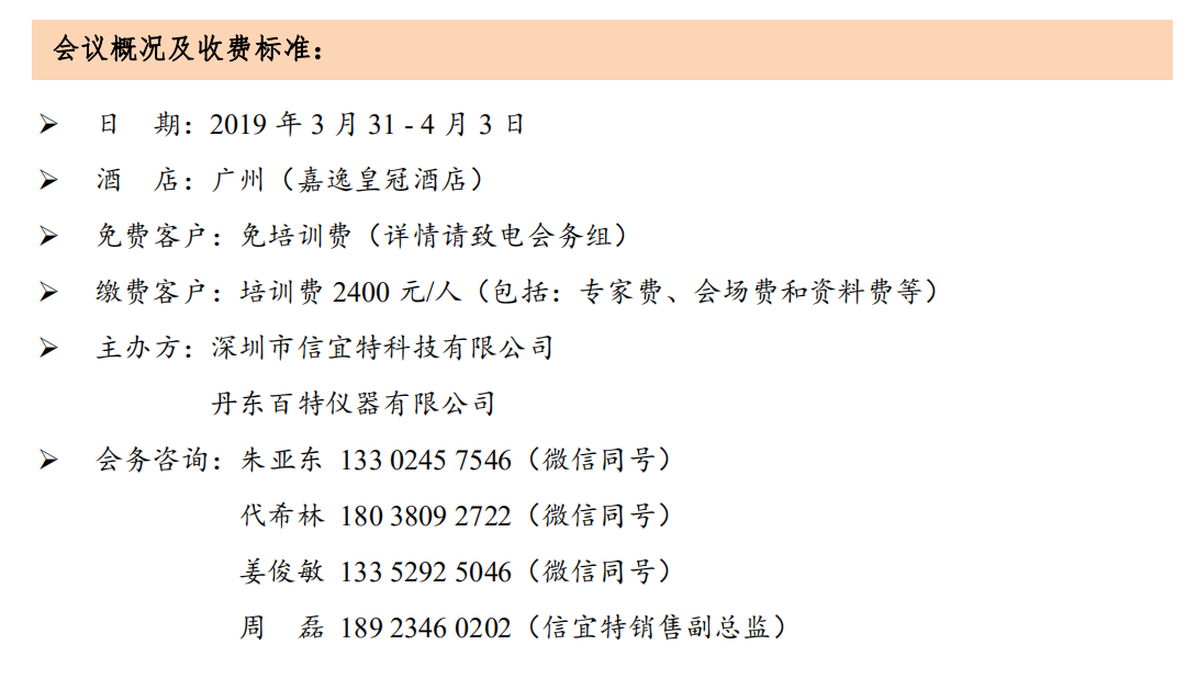 藥品一致性評價大限取消讓人雀躍,但實際卻對我們制藥人提出了更高要求, 我們還要本著初心不改、目 標不變、力度不減的原則繼續砥礪前行,為我們崇高的 健康事業保駕護航。鑒于此,我們深圳信宜特聯合丹東百特舉辦廣州技術交流會, 為大家進行政策解讀和實踐經驗分享。本次會議議程三天,邀請專家有崔福德、謝 沐風、姜波、劉宏飛、李雪冰和劉海等,其他專家還在邀請中。專家們將從粉體/ 顆粒學特征參數和壓縮成形技術、溶出度試驗的深刻解讀、仿制藥國內注冊經驗分 享、粉體包衣技術介紹及其在液體緩釋混懸劑中的應用、MAH 解讀及對GMP生產合 規的要求、顆粒檢測在生物制藥領域的最新進展和應用、制劑設備原理及工藝影響 分析等方面進行深入的闡述,相信能給大家帶來不同收獲,期待您的參與!